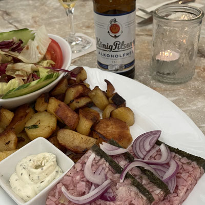 Als fünften und letzten Höhepunkt nach so viel schwerer Kost genossen wir auch leichtere, als kulinarischen Abschluss im benachbarten Museumscafé bei allerlei Delikatessen zwischen Sülze und Burger.