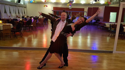 Sarah und Sergej von der Sinsener Tanzschule am Hülsberg zeigen ihr Können und geben einen Tango-Schnupperkurs